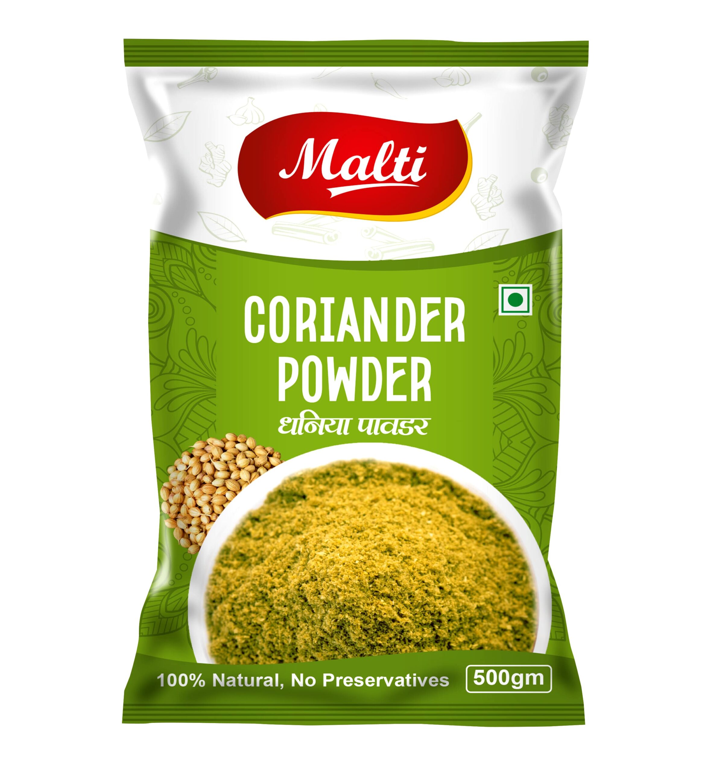 Malti Coriander Powder pack contains fresh and finest sundried powder. Packed and processed carefully under hygienic conditions with strict supervision.